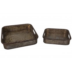 Set de 2 plateaux en zinc par Antic Line, idéal pour un style rétro et vintage dans un esprit authentique. Dimensions : 34 x 7,5 x 34,5 cm et 29 x 6,5 x 28 cm. Composition : Métal.