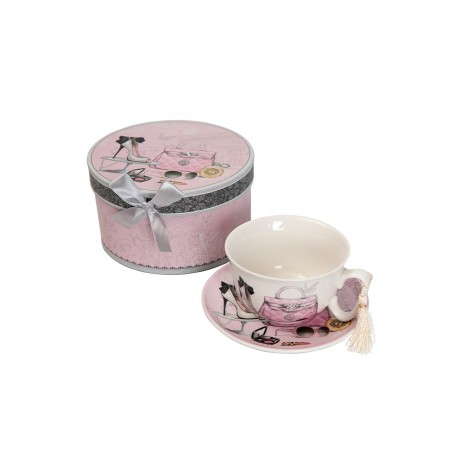 Coffret tasse et sous tasse décor Fashionista par Antic Line, idéal pour un style rétro et vintage dans un esprit authentique.