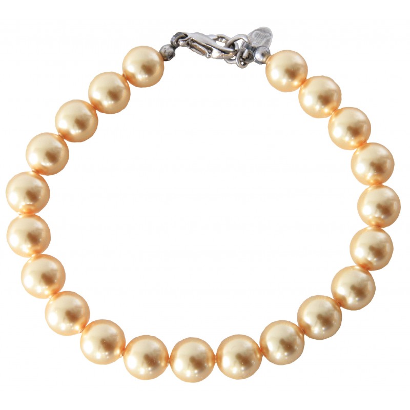 | Descriptif | Bracelet par Manon de Brécourt composé de perles Swarovski® "Gold Pearl" (diamètre des perles : 0,8 cm), fermoir argent. A porter en toute occasion pour un style vintage romantique chic esprit shabby. |