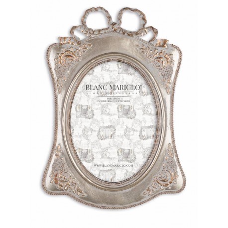 Cadre photo à poser Cavaliere della rosa 28,3 x 20 cm gris clair et doré par Blanc Mariclo, idéal pour une déco shabby chic et romantique dans un esprit authentique cosy et vintage.