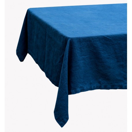 Nappe azul indigo 140 x 250 cm en 60% lin/40% coton 220 gr/m2 signée Aramis et labellisée « Master of Linen » pour une fabrication 100% européenne, idéale pour une décoration authentique et naturelle.
