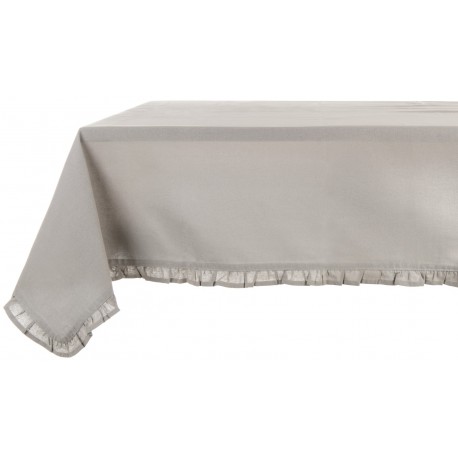 Nappe gris clair avec petits volants 150 x 240 cm par Blanc Mariclo, idéale pour une déco shabby chic et romantique dans un esprit cosy et vintage.