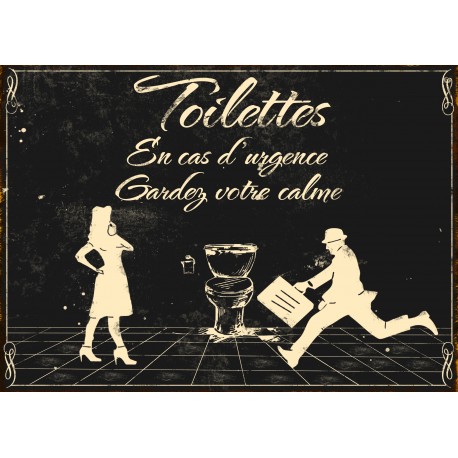Plaque décorative "Toilettes, En cas d'urgence, Gardez votre calme" par Antic Line, idéale pour une décoration vintage dans un esprit cosy et rétro.