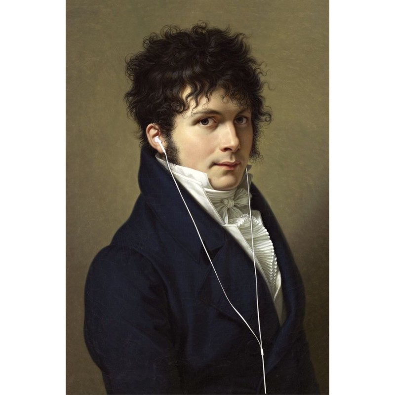 Affiche du portrait du gentilhomme aux écouteurs au format 30 x 40 cm qui apportera une touche originale et décalée à votre décoration intérieure.