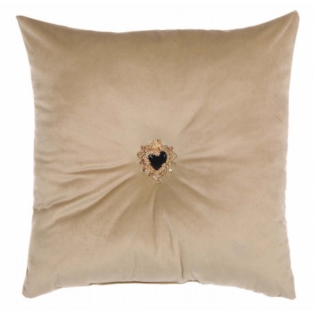 Velvet beige votive heart cushion 45 x 45 by Blanc Mariclo, ideal for a shabby chic decor in a cozy and romantic vintage feel.