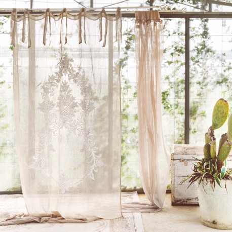 | Descriptif | Natural linen color Clizia embroidered linen curtain with knots 140 x 290 cm by Blanc Mariclo, ideal for a shabby chic decor in a cozy and romantic vintage feel. |