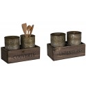 | Descriptif | Set of 2 zinc "Ustensiles / Couverts" pots in a wooden case by Antic Line, ideal for a shabby chic and romantic decor in a cozy and vintage spirit. |